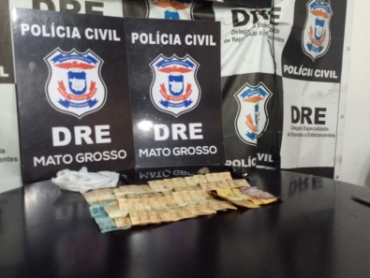 Em buscas, foram apreendidos R$ 1,2 mil, dentro de um armário no quarto do casal, R$ 95,00 na posse do suspeito, além de uma porção de maconha no interior de um veículo que estava com a mulher, e outras duas porções no chão do quarto. Um veículo prisma também foi apreendido.