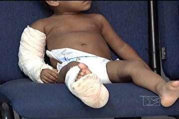 O menino, de 5 anos, é deficiente e tem marcas de violência no rosto e na cabeça, mas a situação pior é a da menina de 2 anos. A criança teve a perna e um braço quebrados. O pai, de 22 anos, diz que foi a mãe.