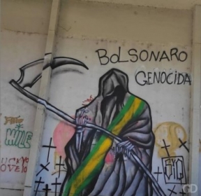 O grafiteiro Jean Siqueira passou por momentos de tensão na manhã desta quinta-feira (3). Ele foi ameaçado por um homem armado após ter feito um grafite em um casarão abandonado no centro de Cuiabá. A arte trazia a expressão "Bolsonaro Genocida", o que irritou o homem. Após as ameaças Jean registrou um boletim de ocorrência.