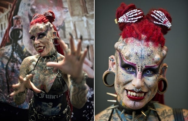 "Mulher Vampiro" exibe seus "chifres" em evento de tatuagens no México