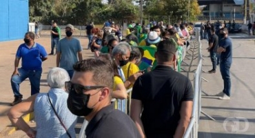 Vestidas de verde e amarelo, centenas de pessoas se reuniram para recepcionar o presidente da República, Jair Bolsonaro (sem partido), na manhã desta quinta-feira (19), em frente ao aeroporto Internacional Marechal Rondon, em Várzea Grande. Esta é a primeira visita do presidente a Cuiabá desde sua eleição.