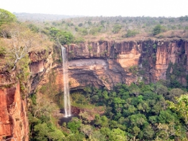 A cachoeira Véu de Noiva, em Chapada dos Guimarães, está praticamente seca devido ao período de estiagem em todo o estado. De acordo com o Instituto Chico Mendes de Conservação da Biodiversidade (ICMBio), nunca houve registro de tão pouca água na região.