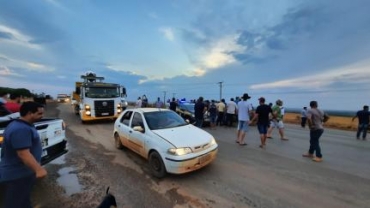 BR 163 KM 593 e 601, em Nova Mutum, os bloqueios permitem carretas com cargas não perecíveis saída para o posto Gil e saída para Lucas do Rio Verde