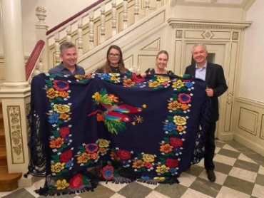 Na ocasião, Virginia Mendes presenteou os embaixadores com uma rede produzida pelas redeiras de Limpo Grande e aproveitou para divulgar a arte e a cultura mato-grossense fora do País.