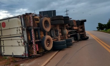 Caminhão carregado com 8 toneladas de gelo tomba na MT-320