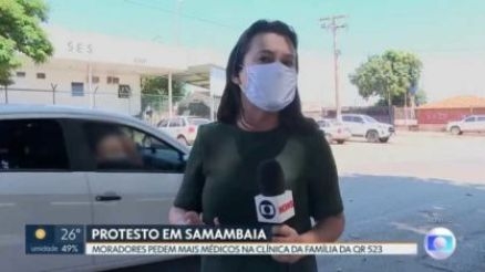 A repórter Camila Guimarães, da TV Globo Brasília, estava ao vivo no telejornal “DF1” passando informações sobre um protesto de moradores contra a falta de médicos em Samambaia Sul, região administrativa do Distrito Federal.