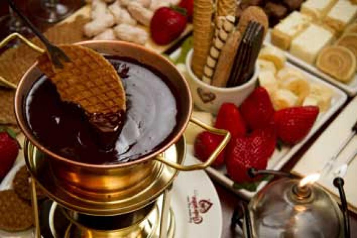 Fondue de chocolate com frutas ou Fondue de queijo com torradas