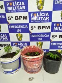 Um homem, que não teve seu nome divulgado, foi preso por cultivo ilícito de drogas, no final da tarde de domingo (17), no bairro Jardim Rondônia, em Rondonópolis (212 km ao sul de Cuiabá). O suspeito cultiva maconha em três baldes na quitinete onde morava.