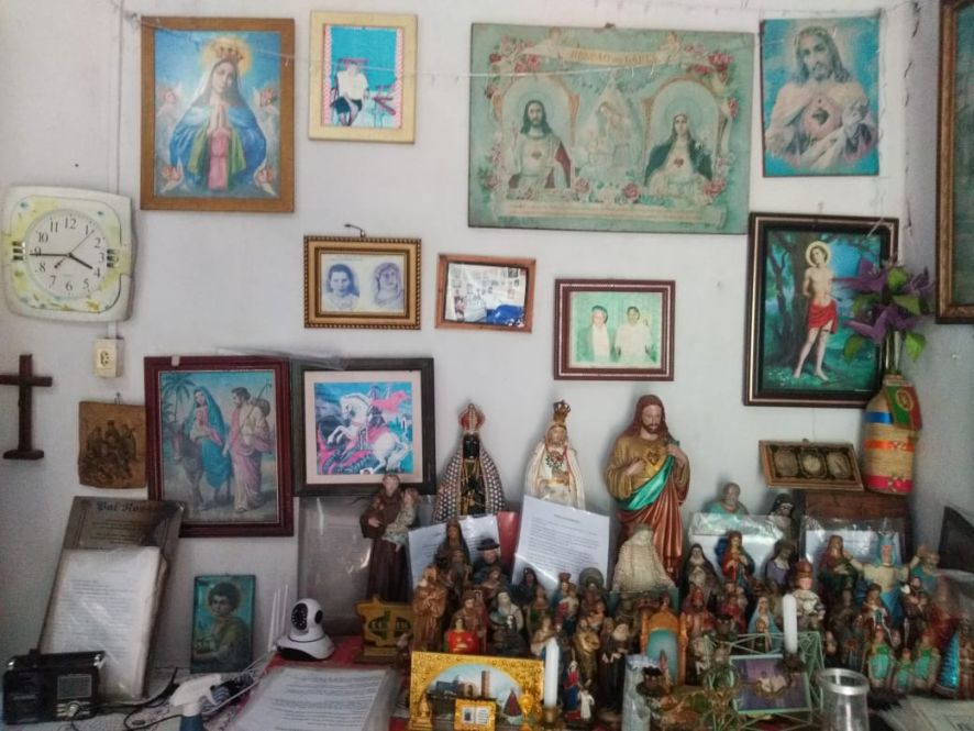 Com o auxílio de seus mais de 30 santos, entre imagens nas paredes e estátuas no altar, Seo Dito, como é conhecido, clama pelos enfermos e pelos desprotegidos espiritualmente.