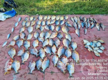 Uma equipe do Batalhão Ambiental prestou apoio no local e contabilizou 67 unidades de Pacu, 21 unidades de Pacupeva, 19 peixes da espécie Piaçu e cinco Piraputangas. Para os militares, o suspeito afirmou ter pescado os peixes, na região de Barão de Melgaço, e relatou não possuir carteira de pescador.