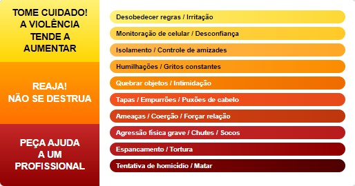 Além do quiz, o site disponibiliza o “Violentômetro”, um gráfico que mostra a escalada da violência dentro dos relacionamentos, da fase inicial, com ofensas verbais e manipulação, até os estágios mais graves, que podem resultar em feminicídio.