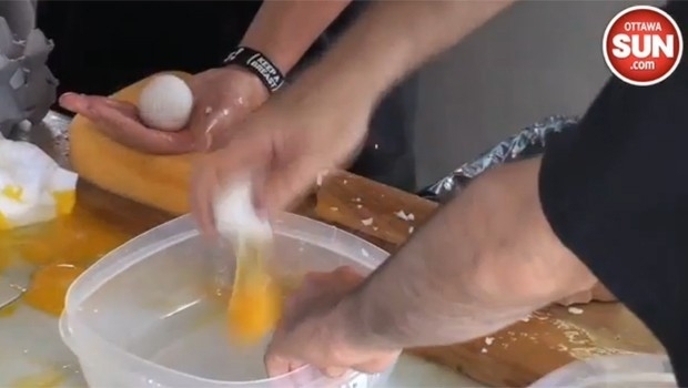 O cozinheiro Corey Peras conseguiu bater o recorde mundial de quebra de ovos com apenas uma mão na sexta-feira (22), em Ottawa, no Canadá. Com a supervisão de um oficial do Guinnes World Record, Peras obteve a marca de 3.031 ovos em uma hora, informou o jornal "Ottawa Sun". Desse modo, o chefe veterano de um pequeno restaurante em Barrhaven superou o antigo recorde de 2.086 ovos.