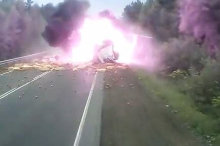 As estradas podem se tornar lugares terríveis. Imagens de uma trágica colisão, ocorrida na cidade de Chelyabinsk, na Rússia, foram parar no YouTube e vistas por milhares de internautas. De acordo com a descrição do vídeo, um caminhão Volvo perdeu o controle devido a uma falha no sistema de freios. Primeiro bateu em outro e, a partir daí, desencadeou uma sucessão de colisões e explosões. Frutas e cargas rolaram pela estrada.
