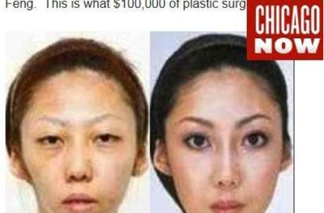 Segundo o The Examiner, o Chicago Now e o Orlando Sentinel, Feng ficou furioso ao descobrir que a ex-mulher tinha investido mais de US$ 100 mil em cirurgias plásticas na Coreia do Norte para ficar bonita. A informação foi dada ao Irish Times.
