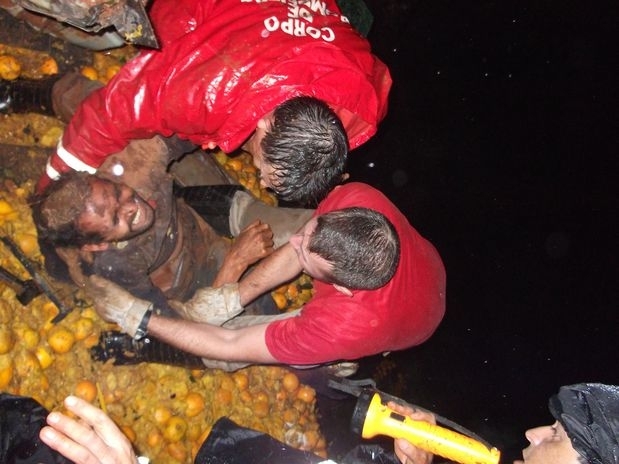 Ele contou aos bombeiros que consumiu parte das laranjas que transportava no caminhão para conseguir sobreviver.