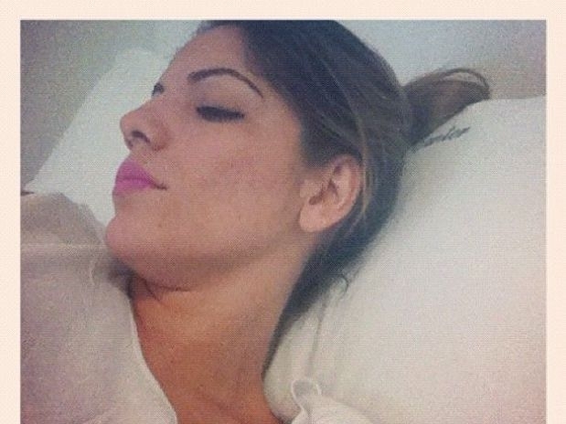 "Bom dia, meus amores!!! O que vocês estão aprontando? Eu aprontei, mas foi ontem (só estou contando hoje porque senão minha mãe iria me matar). Troquei minha prótese de silicone de 300 para 350 ml, estava me sentindo despeitada", escreveu ela, ao postar uma foto na cama da clínica onde fez o procedimento cirúrgico.