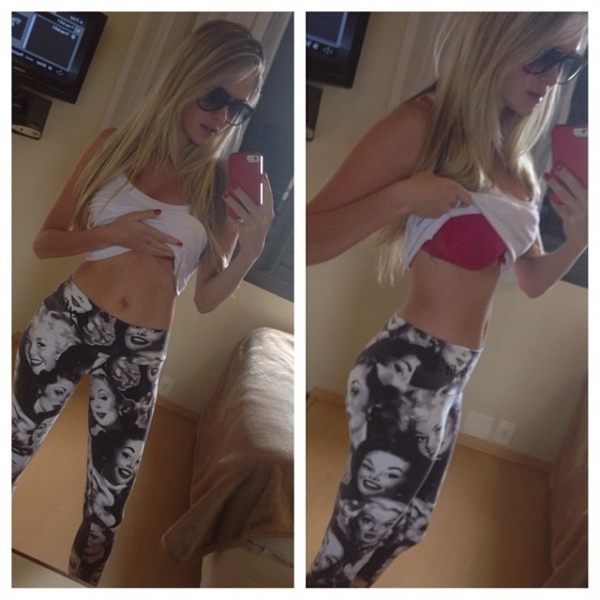 Bárbara Evans levanta a blusa e mostra barriga sequinha