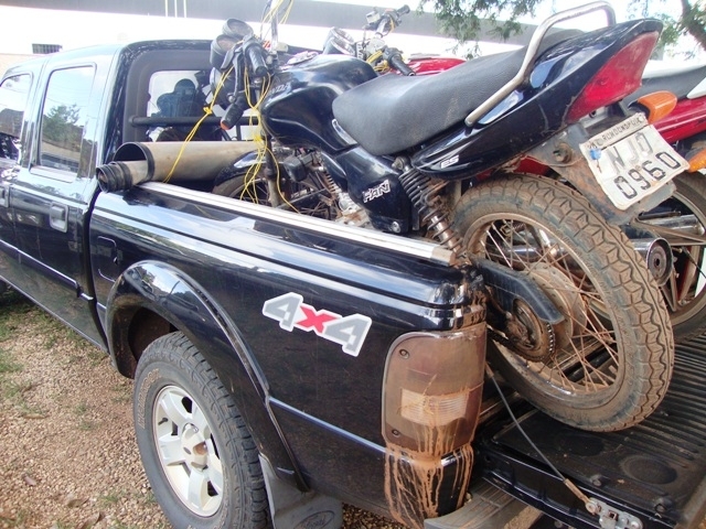 No total, os policiais civis de Sorriso recuperaram um caminhão, uma carreta bitrem, dois tratores, duas motos, uma espingarda e a caminhonete que será checada assim como o registro de duas pessoas presas.