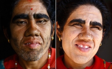 A nepalesa Devi Budhathouki, de 38 anos, e três de seus filhos - Manjura, Mandira, e Niraj - sofrem de uma doença chamada hipertricose lanuginosa congênita, cujo sintoma é o excesso de pelos.