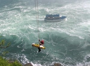 O resgate ocorreu cerca de duas horas depois do homem, de cerca de 40 anos, ter pulado. Ele foi levado a um hospital em Hamiulton, no Canadá, e permanece em estado grave.