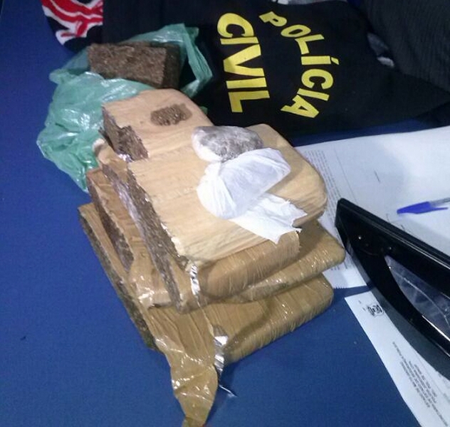 A Polícia Militar apreendeu, na noite de ontem, aproximadamente 10 quilos de maconha e apreendeu dois jovens em uma residência no bairro Vila Mariana, em Sinop. Os policiais chegaram até o local por meio de denúncia. Os suspeitos tentaram fugir quando avistaram a guarnição, porém, a casa já estava cercada. Um tablete foi encontrado na sala e o restante estava dentro de uma bolsa escondida em cima da caixa d"água instalada entre telhado e forro.