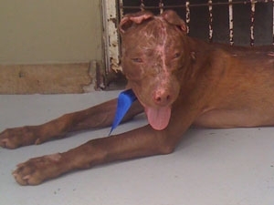 Depois de cerca de 50 dias de tratamento, um filhote de cachorro da raça pitbull, que foi queimado por um produto químico em fevereiro de 2012, está no final do processo de recuperação e foi adotado. A nova dona do aninal é a personal trainer e voluntária na Associação de Proteção aos Animais (Aspan) Vanise Cezar Mateucci. Na manhã desta sexta-feira (13), Vanize foi à Delegacia Estadual de Repressão a Crimes contra o Meio Ambiente de Goiânia (Dema) para se tornar legalmente a fiel depositária do cão.