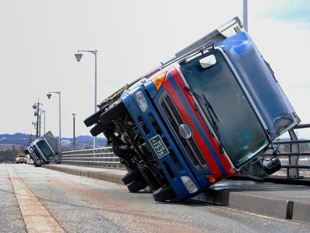 Os ventos são tão fortes que em Toyama a força do fenômeno virou cinco caminhões em uma ponte. Os motoristas desses veículos nada sofreram.