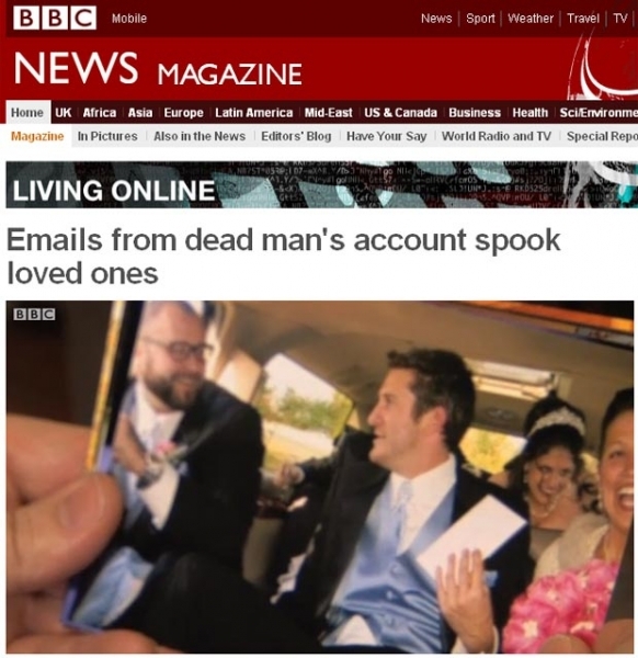 Mas há até mesmo opções para aqueles que querem, intencionalmente, mandar e-mails “do túmulo”. O site “Dead Man’s Switch” permite escrever um e-mail que será mandado a um grupo de destinatários selecionados após a morte do dono da conta.