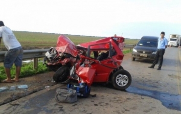 O Uno ficou completamente destruído. Um carreta, branca, basculante de cor vermelha, carregada com milho, acabou tombando, fora da pista, ficando de cabeça para baixo. A outra carreta, vermelha, carroceria graneleira preta, também saiu da rodovia e foi parar em uma área onde há plantio de soja. Os carreteiros, não identificados, não se feriram.