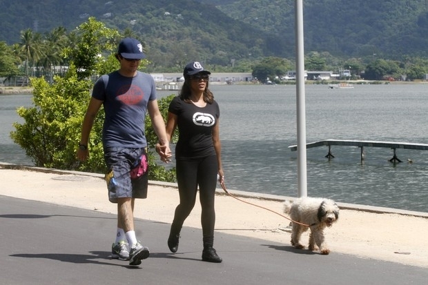Felipe Dylon e Aparecida Petrowky caminham na Lagoa, no Rio