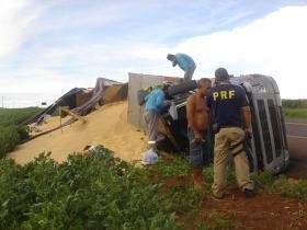 Motorista de caminhão foi autuado em flagrante após provocar o tombamento de uma carreta bi-trem no final da tarde de ontem (30) na BR-163, próximo a Jaraguari (MS).