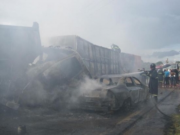 Um veículo Ford Fusion, atingido por um dos caminhões, era ocupado por cinco pessoas. Este carro também pegou fogo, mas nenhum dos ocupantes ficou ferido. Os condutores dos outros veículos envolvidos no acidente sofreram apenas ferimentos leves e foram encaminhados para atendimento médico.
