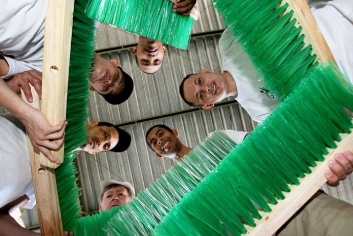 Eles receberam um curso de capacitação de 15 dias úteis para a fabricação de vassouras com garrafas pets descartad