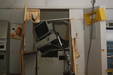 A ação ocorreu por volta das 4 horas quando os assaltantes chegaram ao local e utilizaram explosivos para abrir dois terminais bancários. Os caixas ficaram destruídos e os vidros da entrada do hipermercado foram quebrados com a explosão.