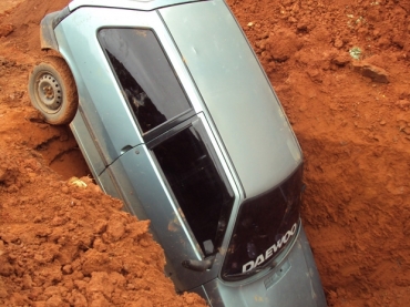 Carro é praticamente "engolido" por vala, no Sul de Minas
