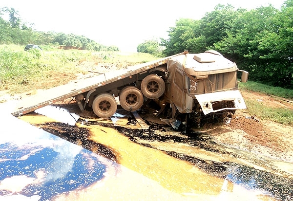 A carreta saiu de Matupá com destino a Sinop e não estava carregada. Ficou muito danificada. O cavalo mecânico teve eixo dianteiro e motor avariados. As causas do acidente são desconhecidas. O trânsito não ficou interrompido.