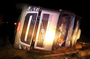 Há poucas informações devido a ausência de sinal de telefonia celular no local. A informação repassada para a PRF é que a carreta tombou e saiu da pista. O tráfego não foi interrompido