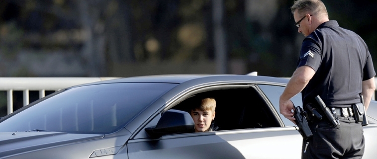 O passeio de Justin Bieber por Los Angeles, Califórnia, na última quarta-feira, dia 14, foi interrompido por um policial, que pediu para que o cantor encostasse seu luxuoso carro para uma conversinha.