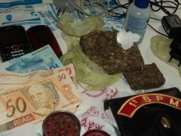 Os policiais encontraram no local uma grande quantidade de cocaína e maconha. Antes de efetuar as prisões, um policial ficou monitorando a área, conhecida como “boca do Luiz Mauro”, por mais de uma hora e flagrou o traficante comercializando a droga.
