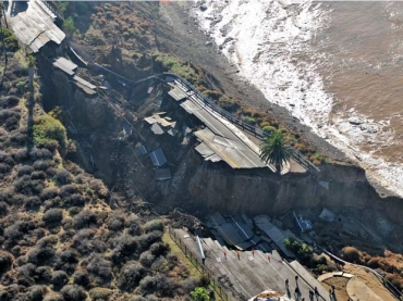 Trecho de rodovia à beira mar em San Pedro, na Califórnia, que ruiu após a forte tempestade que atingiu a região na véspera, é vista nesta segunda-feira (21) (Foto: AP)