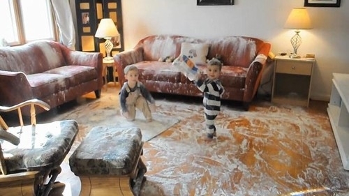 Os meninos espalharam grande quantidade de farinha pela casa. A mulher filmou tudo. O vídeo está fazendo sucesso no YouTube: