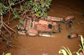 Policiais fizeram buscas no rio, já que a vítima alegava que um dos três suspeitos havia ficado preso no veículo após o acidente, porém, não foi encontrado. "A vítima afirma que em sua residência entraram 3 pessoas, um em cada motocicleta, mas como ele teve seu rosto coberto quando adentrou no veículo, não sabe dizer se no momento apenas 2 deram sequência, ou não. O que podemos dizer é que uma das motocicletas foi deixada dentro da residência da vítima . Seu chassi está raspado, sem placa e identificação", descreve o delegado. (Com Clique F5)