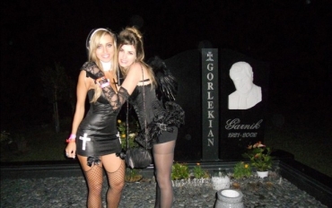 Vestida de freira sexy, Mariana Fusco curte Halloween em cemitério