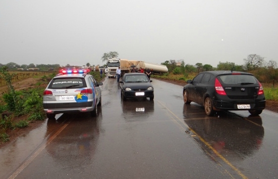 Acidente entre duas carretas interdita rodovia próximo a Barra do Bugres