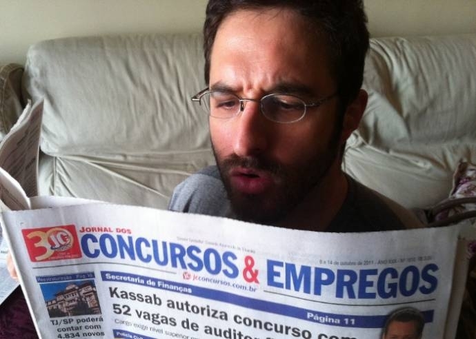 O humorista publicou, nesta quinta-feira (13), uma foto, na qual aparece lendo um jornal especializado em anúncios de trabalho.