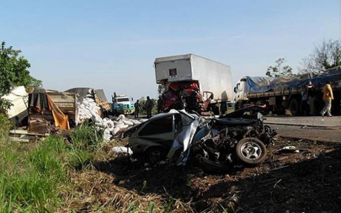 Morreu no local Wiliam Gomes Carvalho, 23, que viajava de carona no caminhão boiadeiro que colidiu com uma carreta parada no acostamento. No choque, se envolveram também mais duas carretas e uma picape Hilux, que bateu na traseira.