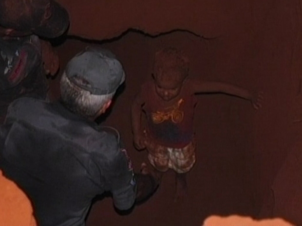 Retroescavadeira é usada para resgatar menino que caiu em buraco