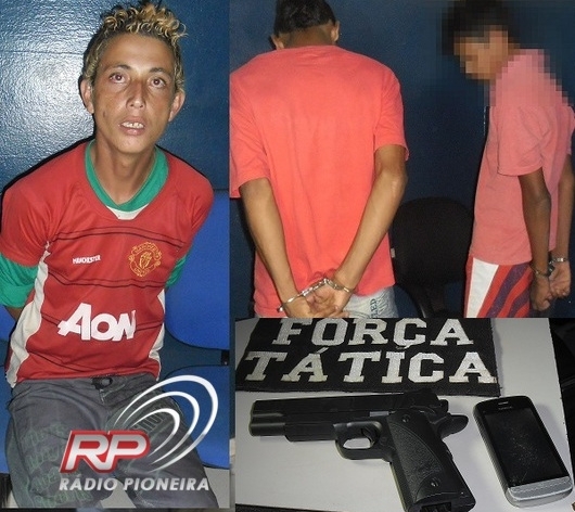 Gerson Kenedy Barreto da Cunha (25 anos), G.I.R.G (14 anos) e T.L.A (16 anos) foram abordados pela Força Tática da Polícia Militar por volta das 17h15min próximo à Rodoviária. O Soldado Wandemberg da Força Tática, em entrevista à Rádio Pioneira explicou que a detenção se deu após denúncia. “Através de denuncia anônima no 190 informaram que havia três indivíduos portando arma de fogo. Diante das informações realizamos a abordagem na rodoviária. Efetuamos a revista no maior, onde foi encontrada a arma de brinquedo na cintura”.
