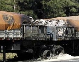 Cinco veículos se envolvem em acidente e duas carretas pegam fogo