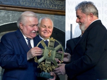 O ex-presidente Luiz Inácio Lula da Silva recebeu nesta quinta-feira, em Gdansk (norte da Polônia), um prêmio criado por Lech Walesa, líder histórico do sindicato polonês Solidariedade.
